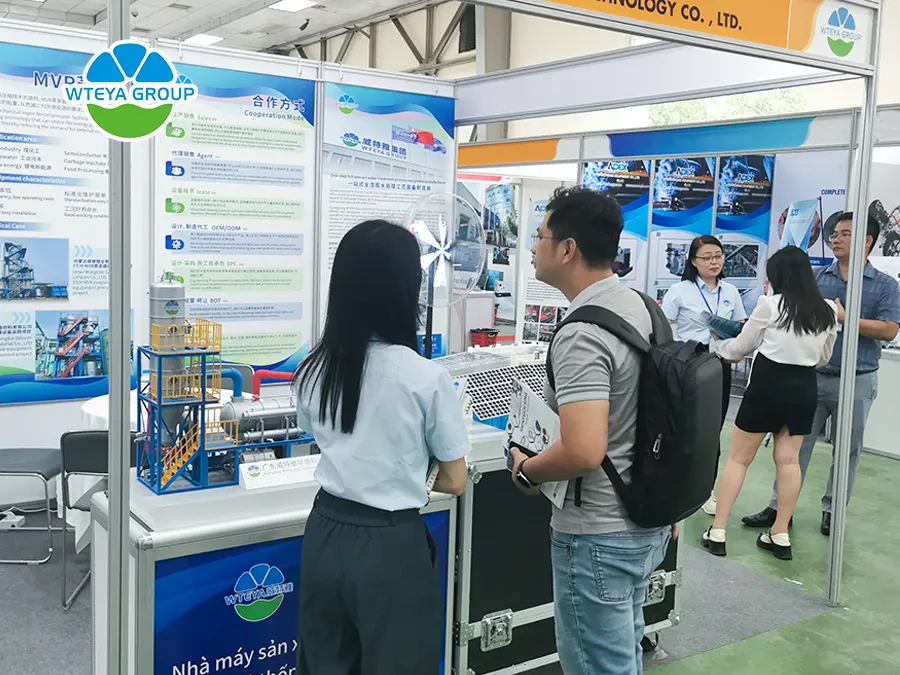 Κατά τη διάρκεια αυτών των τριών ημερών, το περίπτερό μας προσέλκυσε πολλούς επιχειρηματίες από όλο τον κόσμο, συμπεριλαμβανομένων πολλών αγοραστών από το Βιετνάμ. Εκτός από τη φυσική απεικόνιση των εξαρτημάτων του προϊόντος, εκθέσαμε επίσης ειδικά τρισδιάστατα μοντέλα πολλών εξοπλισμών. Το λεπτομερές τρισδιάστατο μοντέλο όχι μόνο επιτρέπει στους επισκέπτες να κατανοήσουν πλήρως τη δομή και την αρχή λειτουργίας του προϊόντος μας, αλλά επίσης ενισχύει τη διαδραστικότητα και την εμπειρία της έκθεσης, έτσι ώστε οι πελάτες να έχουν μια πιο διαισθητική κατανόηση της τεχνικής δύναμης και των πλεονεκτημάτων του προϊόντος μας. Ενδιαφέρονται ιδιαίτερα για τον ηλιακό μας ολοκληρωμένος εξοπλισμός επεξεργασίας λυμάτων, εξατμιστές, εξοπλισμός επεξεργασίας μεμβράνης, και εξοπλισμός φωτοκαταλυτικής οξείδωσης.
